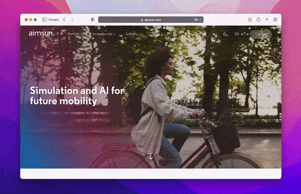 I'm based in Barcelona and work at Aimsun, a traffic simulation software company, as a front-end designer contributing to the development of the interface of their products and improving their overall experience.