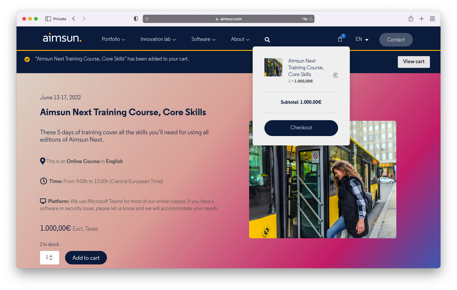 In parallel, the additional challenge was to configure and design a custom eCommerce platform for selling Aimsun training courses worldwide.