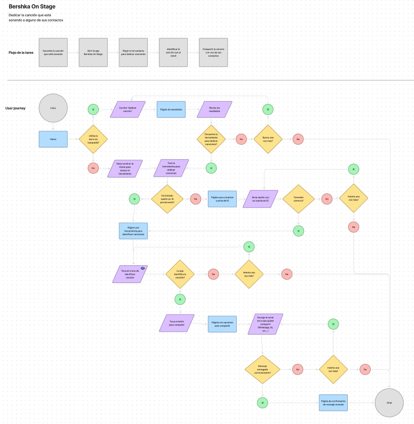 Finally, the exercise proposed to create the flows that users would make to use special features such as dedicating the song that is playing on stage, these flows can be seen in this link to FigJam.